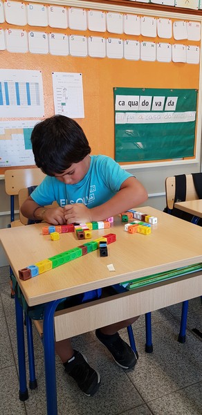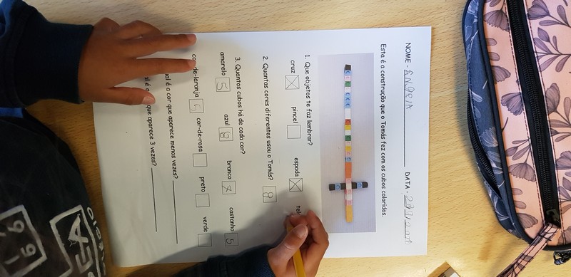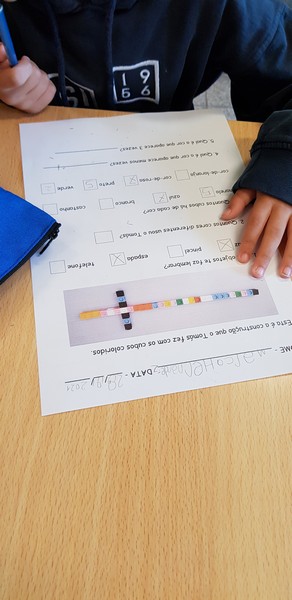 O 1.º ano esteve a “brincar” com cubos… e daí nasceram muitas construções interessantes, entre elas – a espada do Tomás! A professora fotografou a espada e construiu uma ficha. O Tomás ficou muito orgulhoso e todos aprendemos com aquela sua  brincadeira.