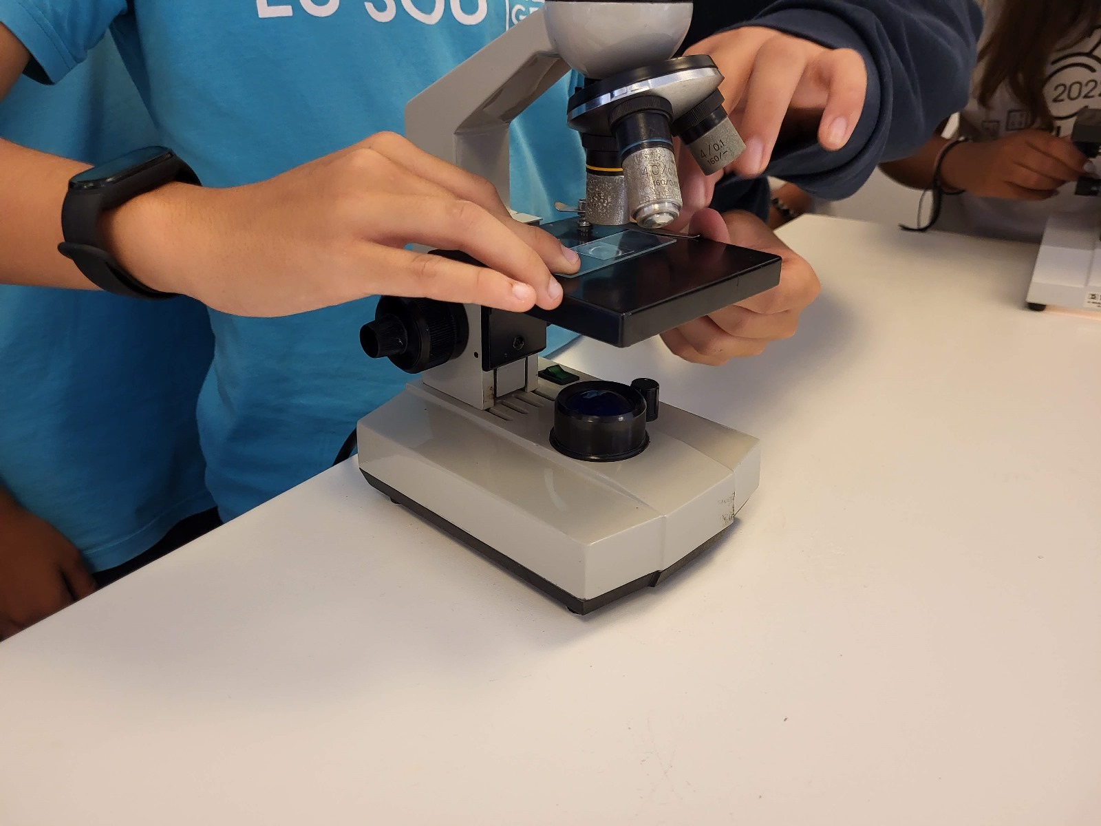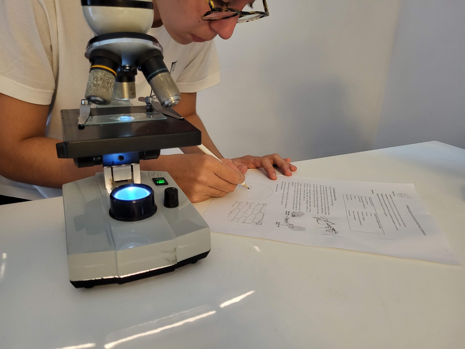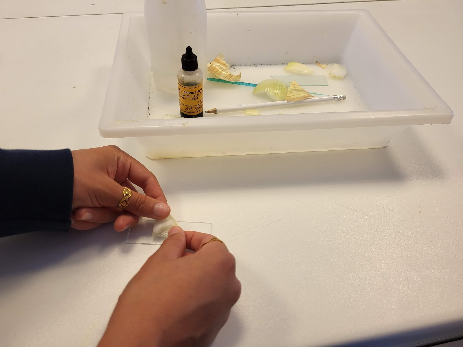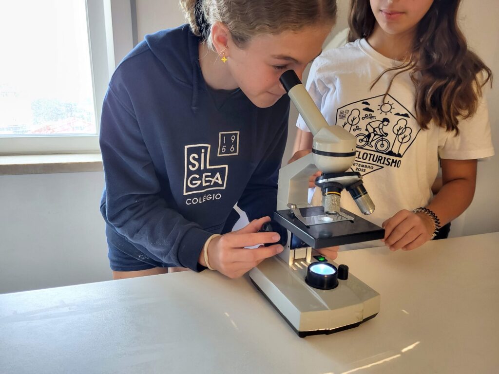 Os alunos dos 8.º ano de Ciências Naturais estiveram a fazer preparações e a observar, ao microscópio ótico, células eucarióticas. O objetivo foi identificar na prática as diferenças entre uma célula animal e uma célula vegetal. No momento de retirar o epitélio da cebola, muitas lágrimas se derramaram, afinal era cebola que manusearam… Mas, por outro lado, o momento de raspar o interior da própria bochecha para obter epitélio bucal, foi de grande risota!