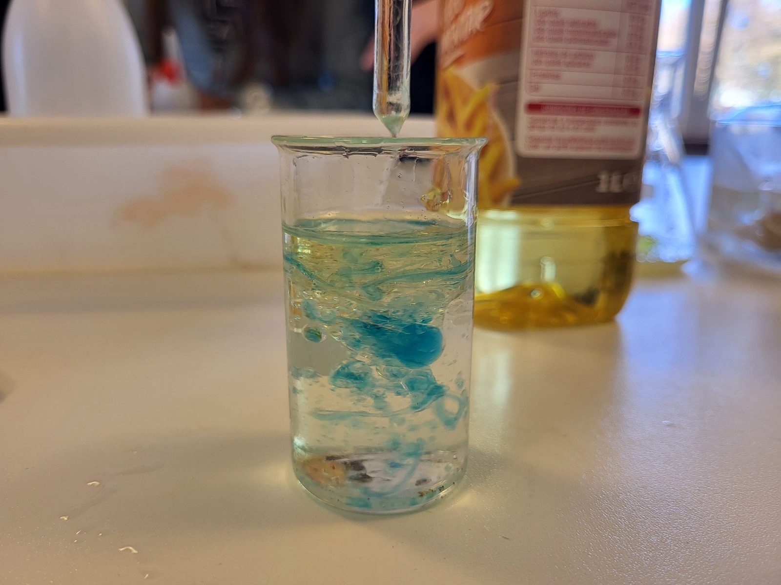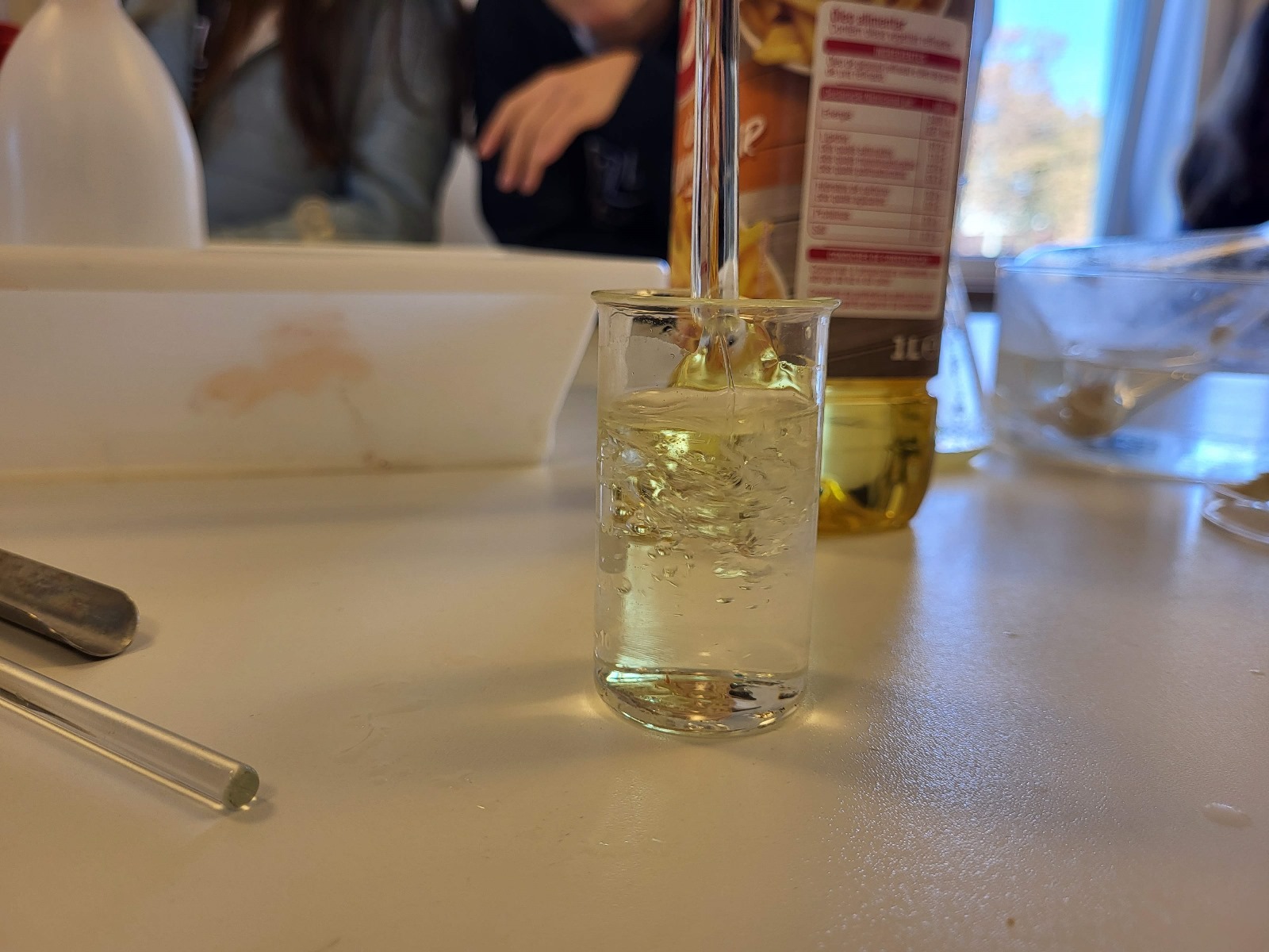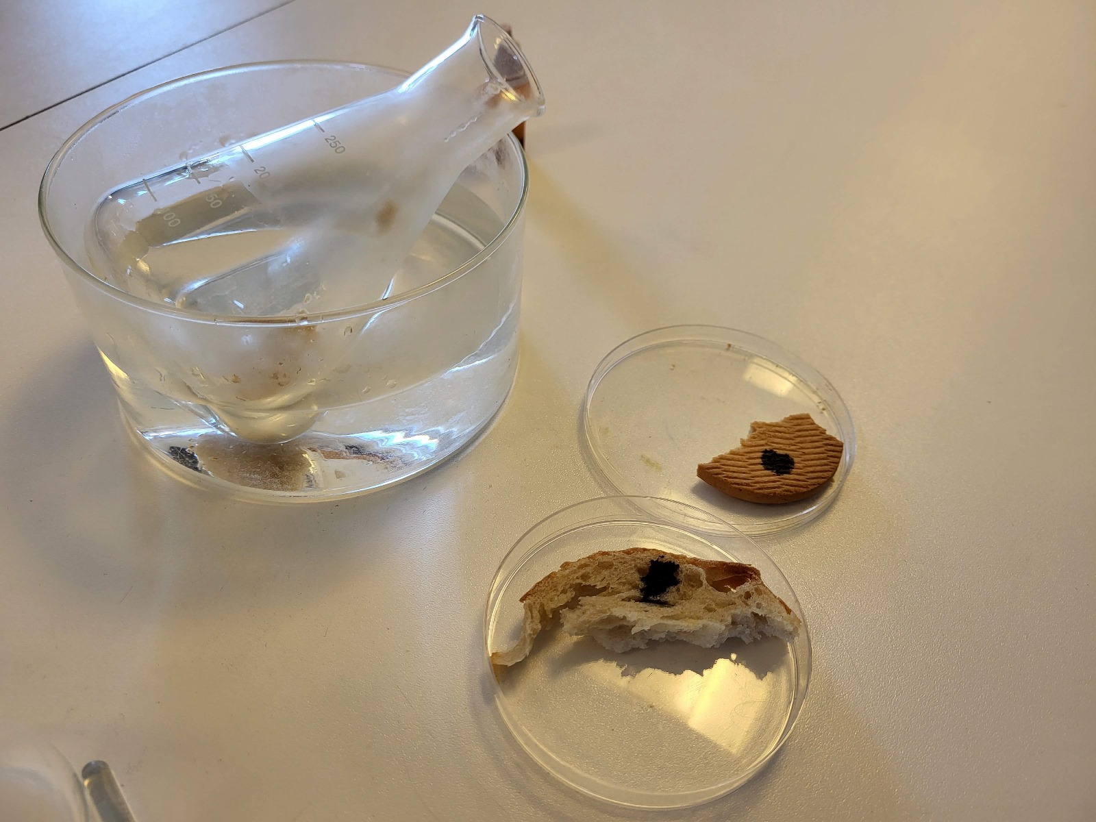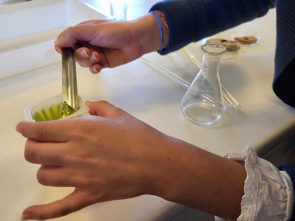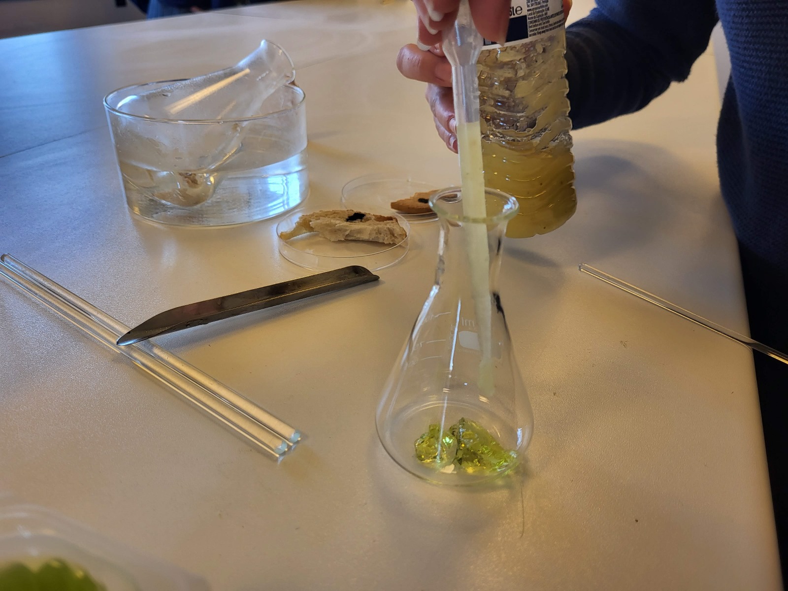 A turma do 9.º ano de Ciências Naturais esteve no laboratório a observar o efeito de enzimas na digestão. A amilase salivar presente na saliva digeriu o amido (glícido) e a bromelina presente no sumo de ananás quebrou ligações do colagénio (proteína) presente na gelatina. Foi ainda estudada a importância da temperatura na atuação destas enzimas. Para terminar simulou-se a intervenção da bílis na emulsão de gorduras, como etapa da digestão dos lípidos.