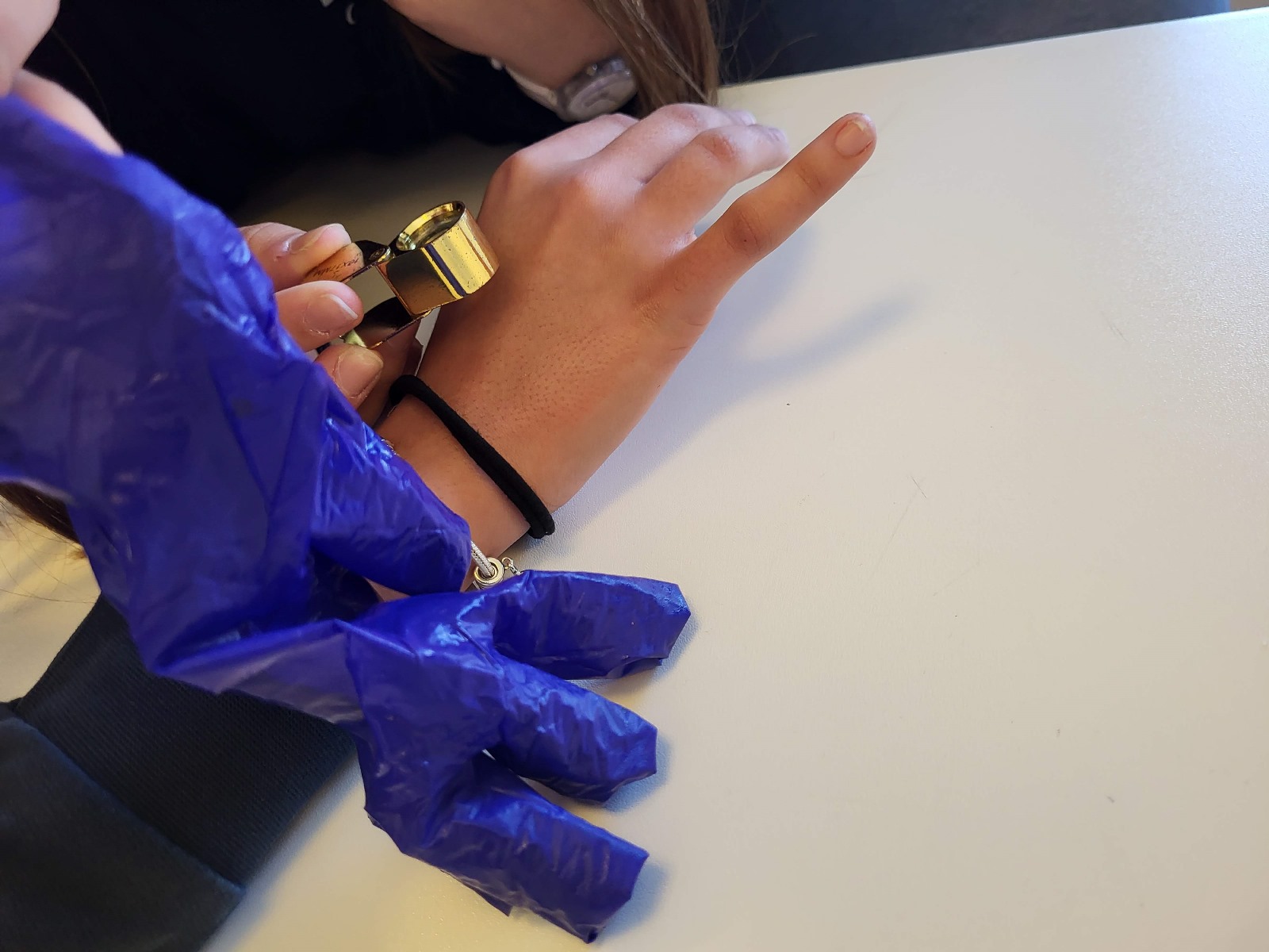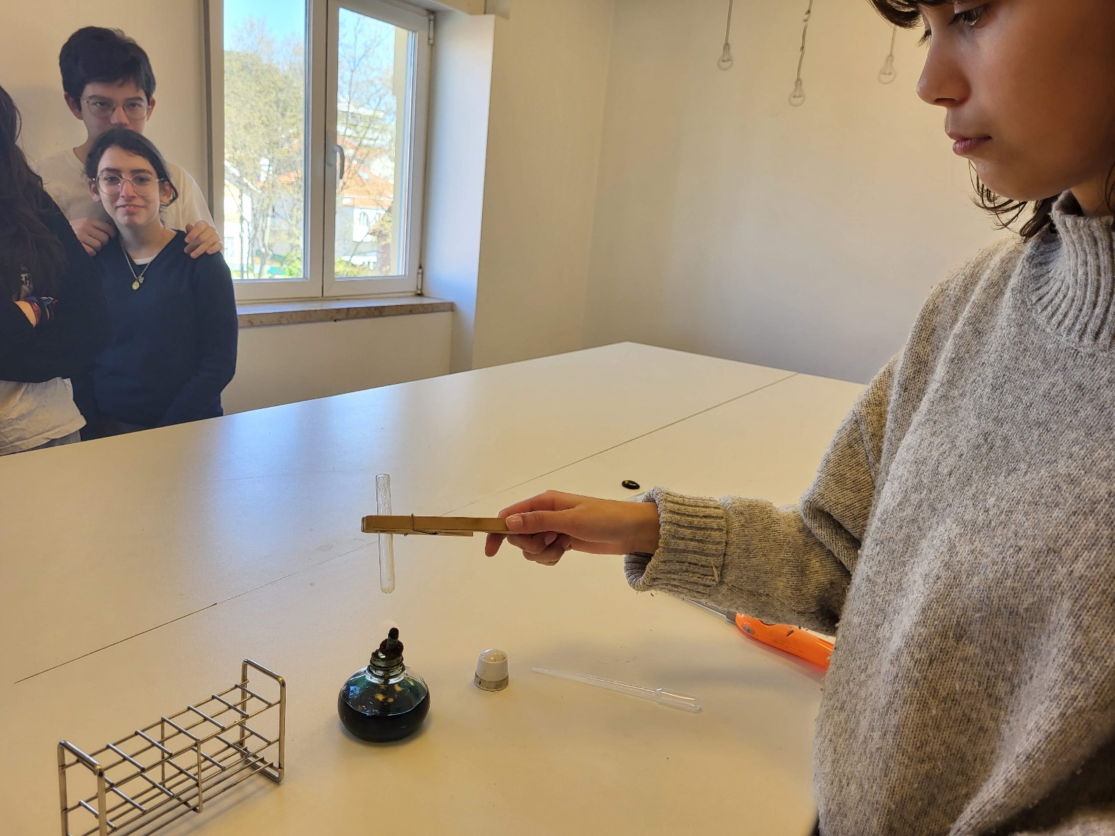 Os alunos do 9.º ano de Ciências Naturais efetuaram uma atividade onde puderam observar, após 20 min de exercício, os poros e a libertação de suor desempenhando a função de termorregulação. Posteriormente foi possível coletar o suor de um voluntário e após evaporação da água observar o cloreto de sódio nas paredes do tubo, evidência de outra função: a função excretora.