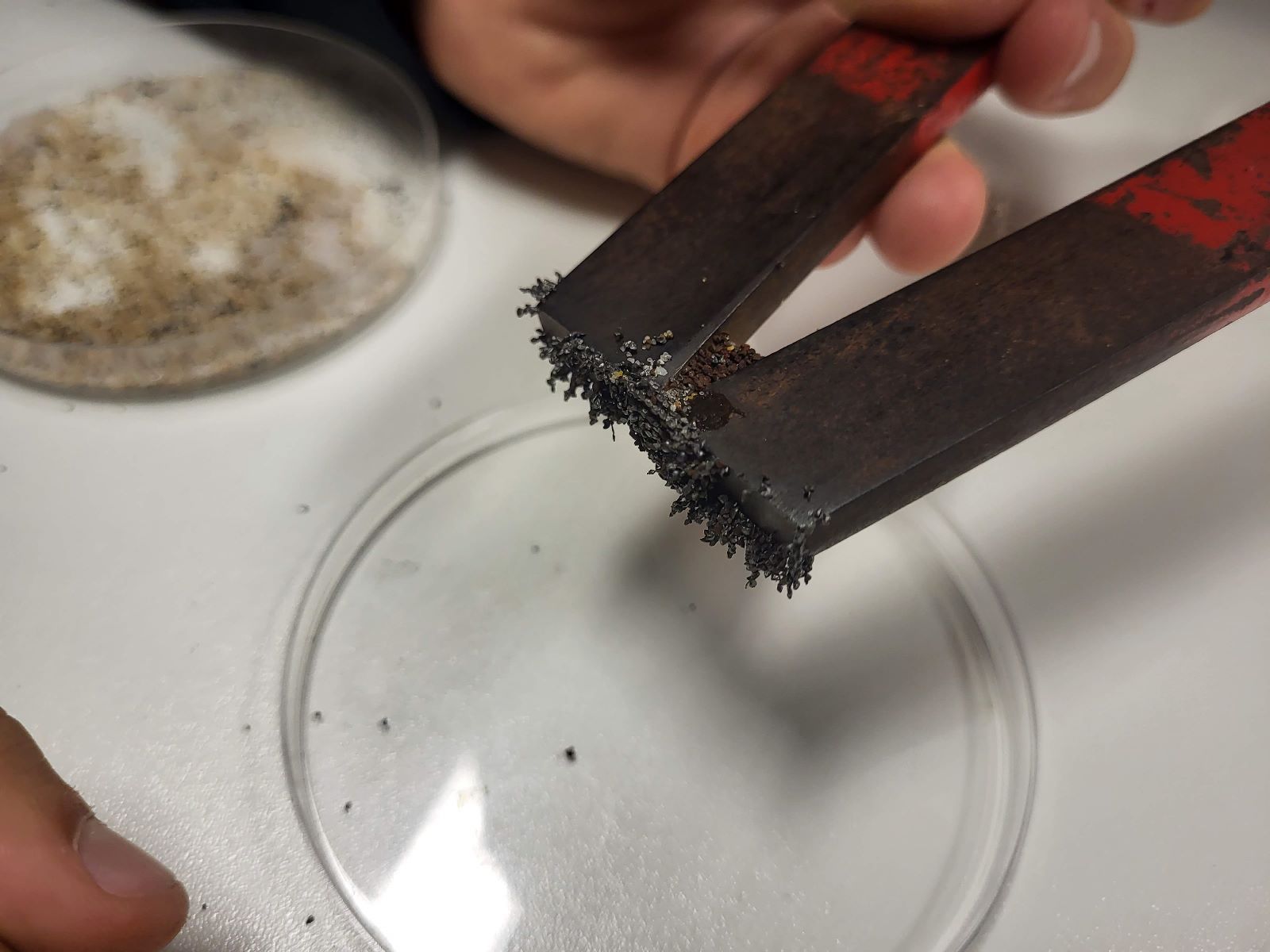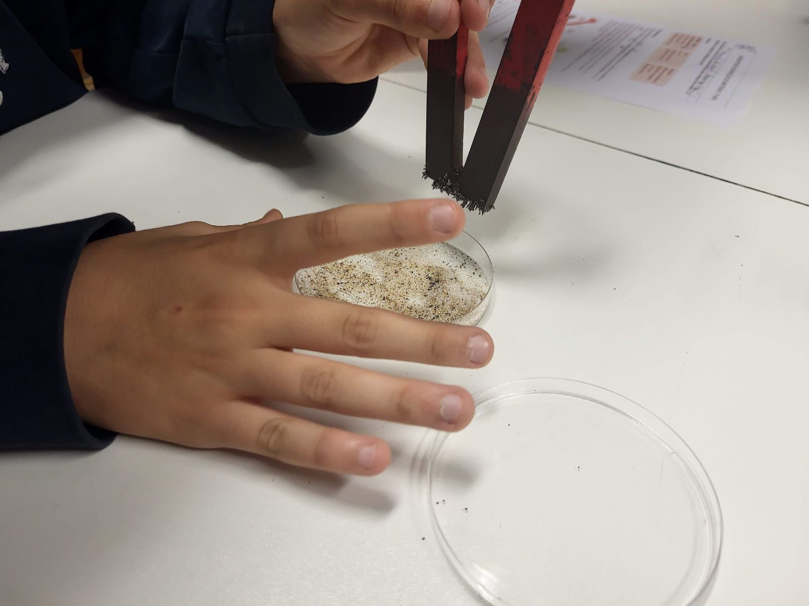 O 7.º ano foi desafiado a separar os três componentes de uma mistura: areia, cloreto de sódio e limalha de ferro. Será que conseguiram?