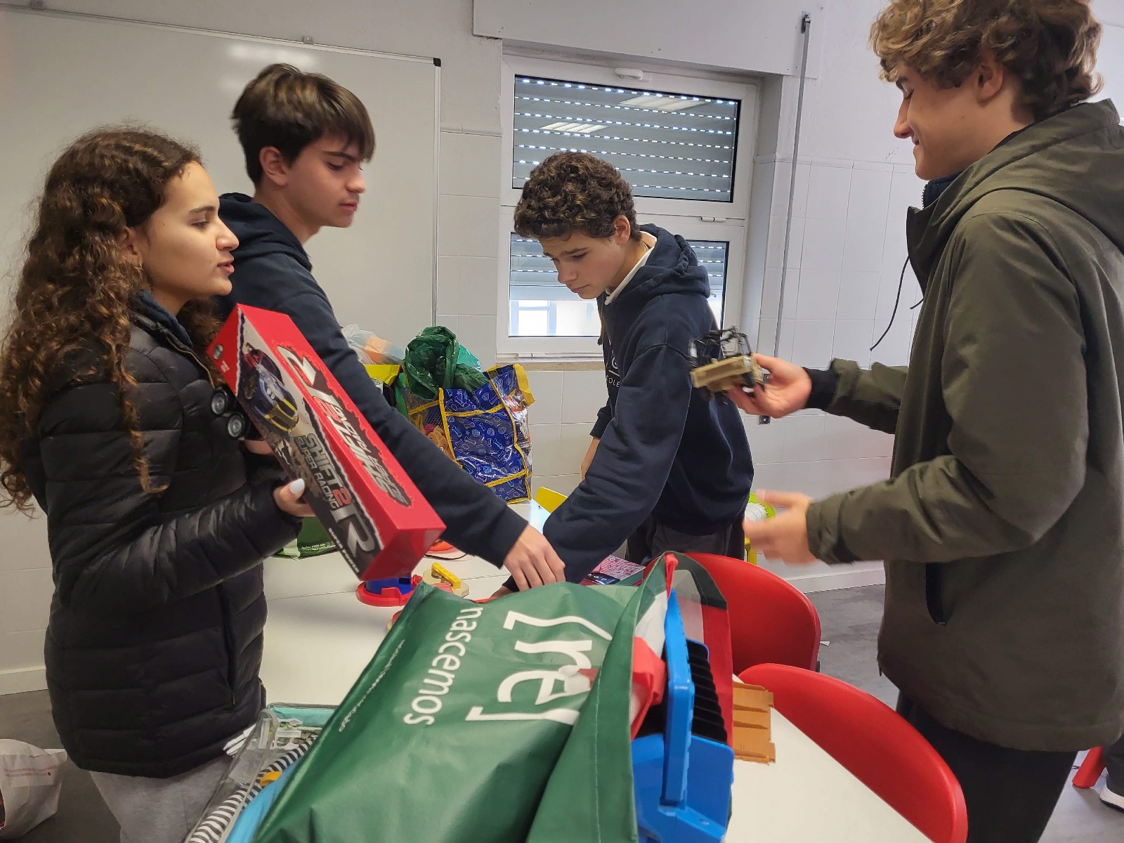 Os alunos estiveram a separar com muito carinho os donativos recebidos para o Cabaz de Natal. Quando acabou a hora da aula, ainda permaneceram alguns resistentes que quiseram dedicar o seu intervalo a esta causa.