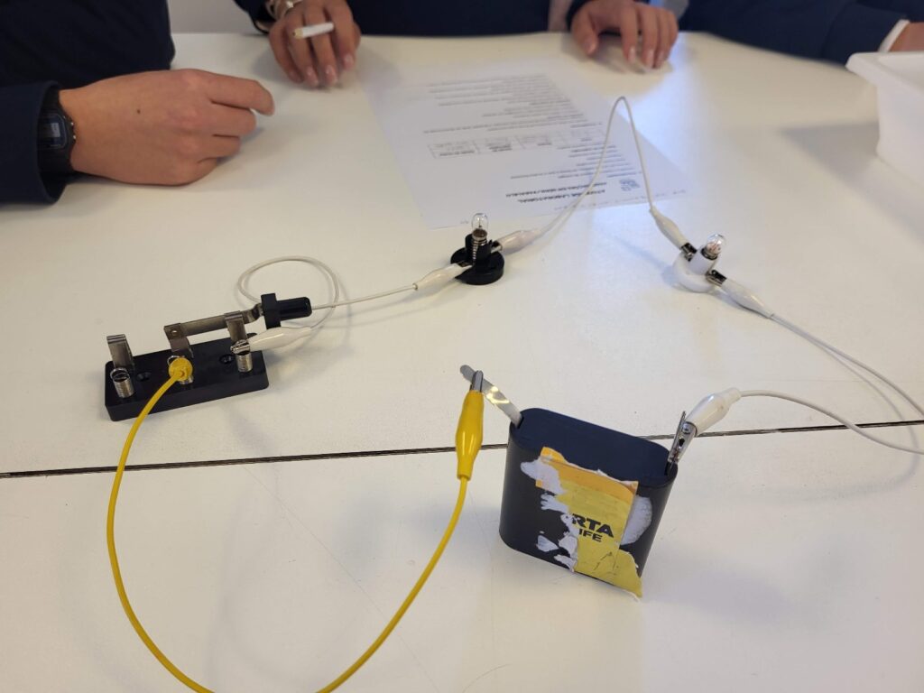 A turma do 9º ano de Físico-Química foi ao laboratório montar circuitos elétricos em série e em paralelo de modo a compreender o funcionamento dos interruptores nas nossas casas. Depois de montados os que constavam do protocolo laboratorial ainda houve de tempo de dar largas à imaginação!