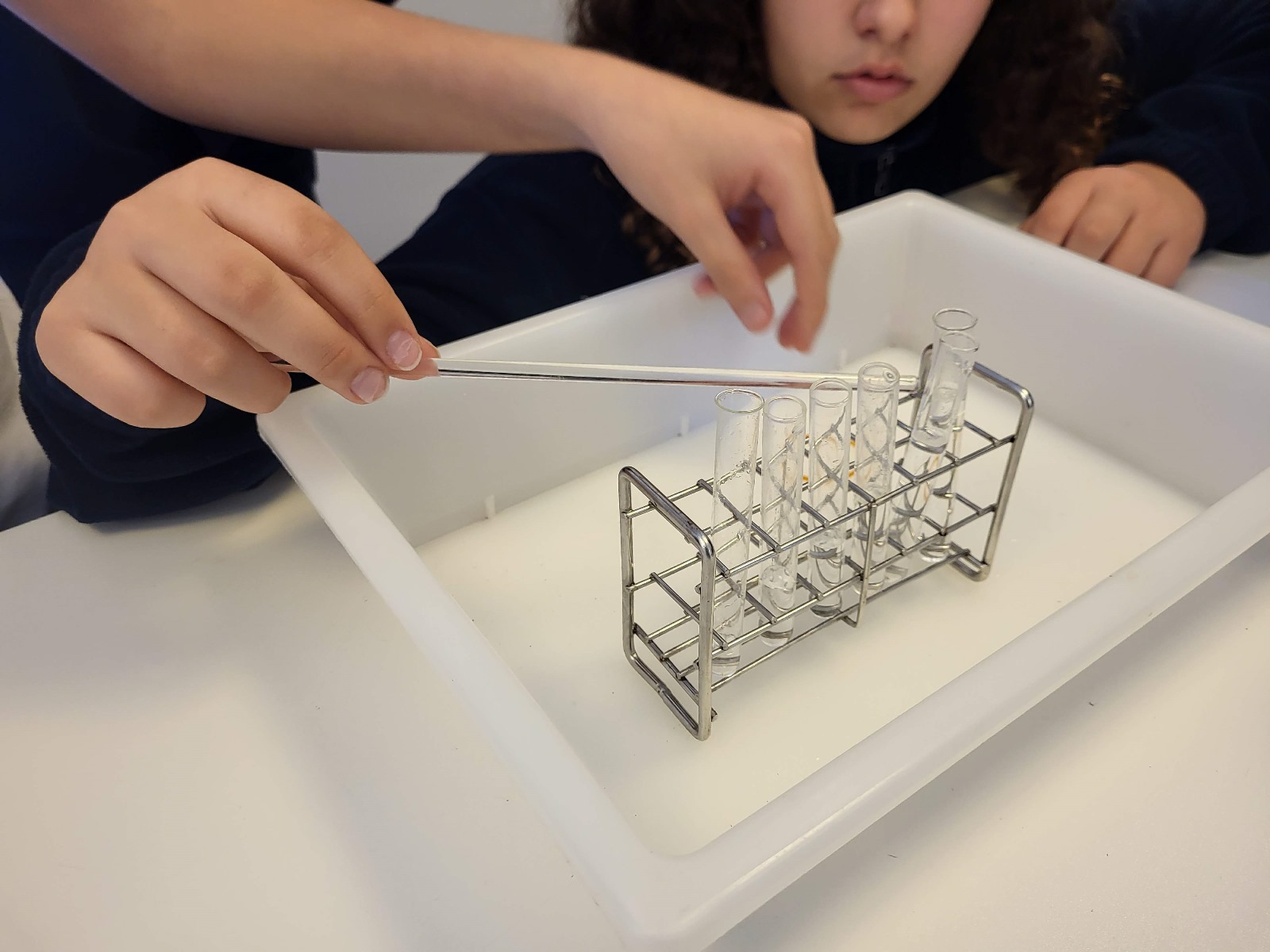 A turma do 8.º ano de Físico-Química esteve no laboratório a estudar que fatores afetam os atributos de um som (altura e intensidade). O momento alto da aula foi mesmo a competição, para ver quem atingia mais decibéis.
