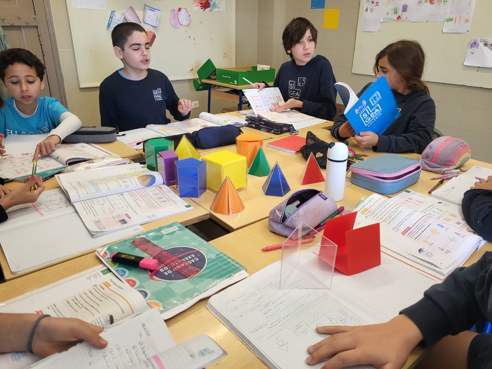 Hoje foi dia do 5.º ano de Matemática aprender mais sobre planificação de sólidos geométricos. Entre muita manipulação de modelos e debate de ideias lá se chegaram a conclusões: afinal há mais do que uma forma de poder planificar o mesmo sólido!