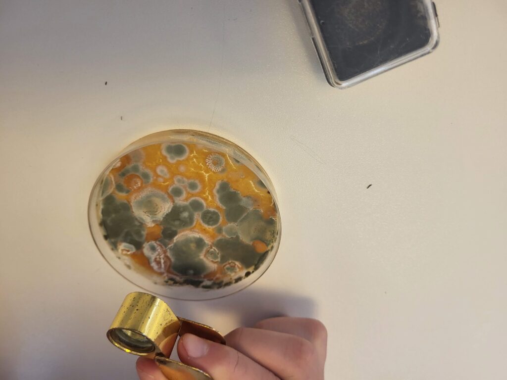 Os alunos do 6.º ano de Ciências Naturais efetuaram uma atividade onde puderam observar microrganismos em ação. Em placas de Petri com um meio nutritivo fizeram-se multiplicar bactérias retiradas da superfície do nosso corpo e aguardam-se resultados. Mas previamente, com condições ideais de humidade e temperatura, foi possível fazer crescer fungos para observar durante a aula.