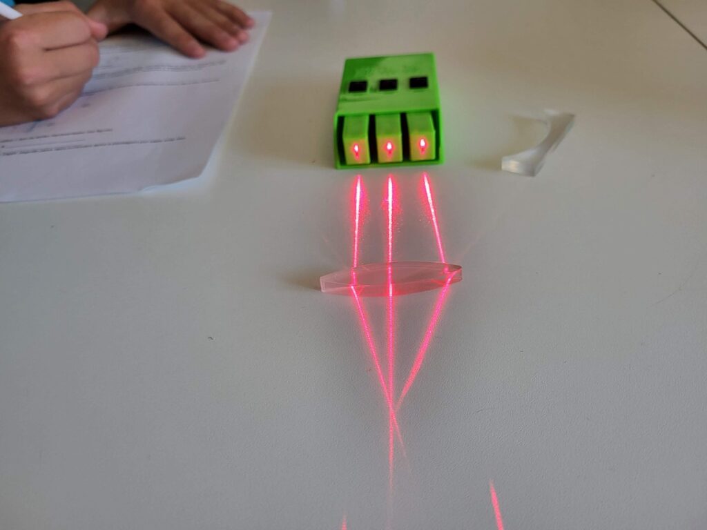 A turma do 8.º ano de Físico-Química esteve no laboratório observar a refração da luz através de lentes côncavas e convexas. Depois foi tempo de medir a distância focal e determinar a vergência de cada lente.