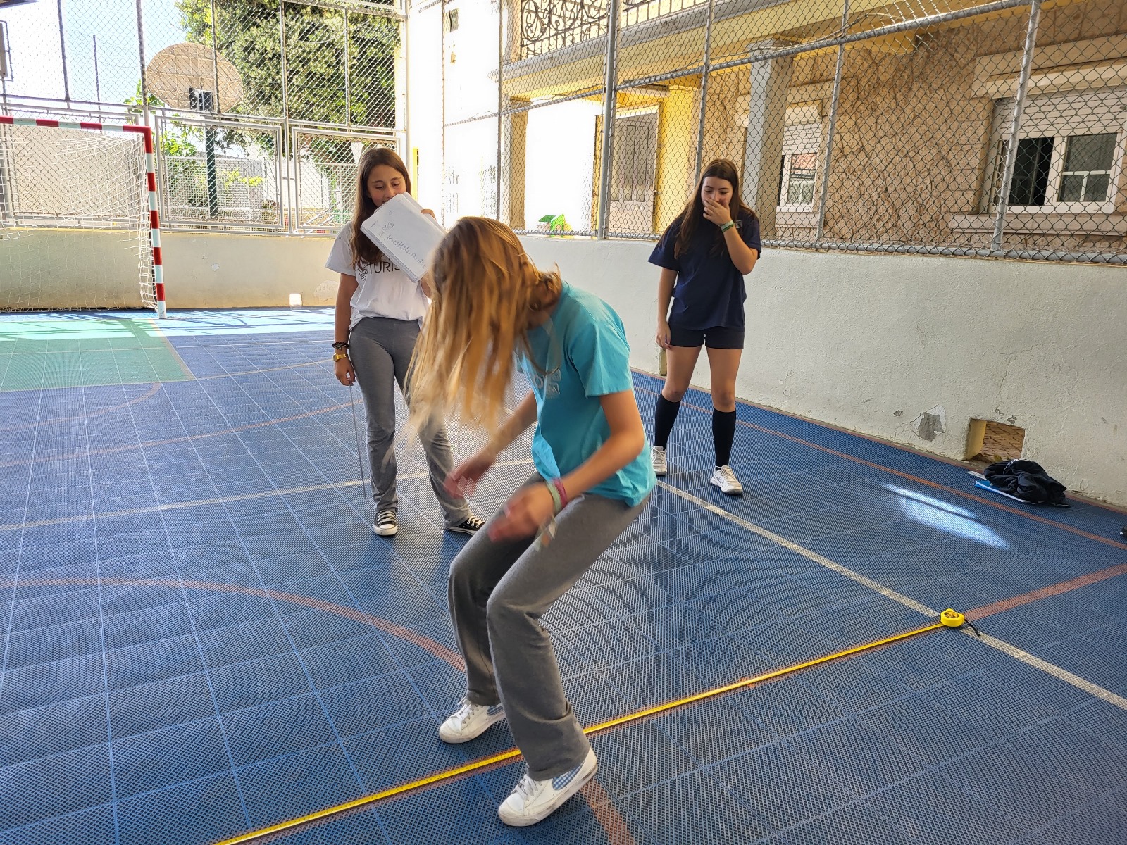 Nas aulas de Matemática também se salta! Hoje foi dia de projeto de Estatística. Para trabalhar variáveis quantitativas contínuas, cada grupo tinha de medir algo em todos os alunos da turma do 6.º ano: o dedo indicador, a mão, o cabelo, a altura, o máximo alcance do braço e o comprimento do salto.